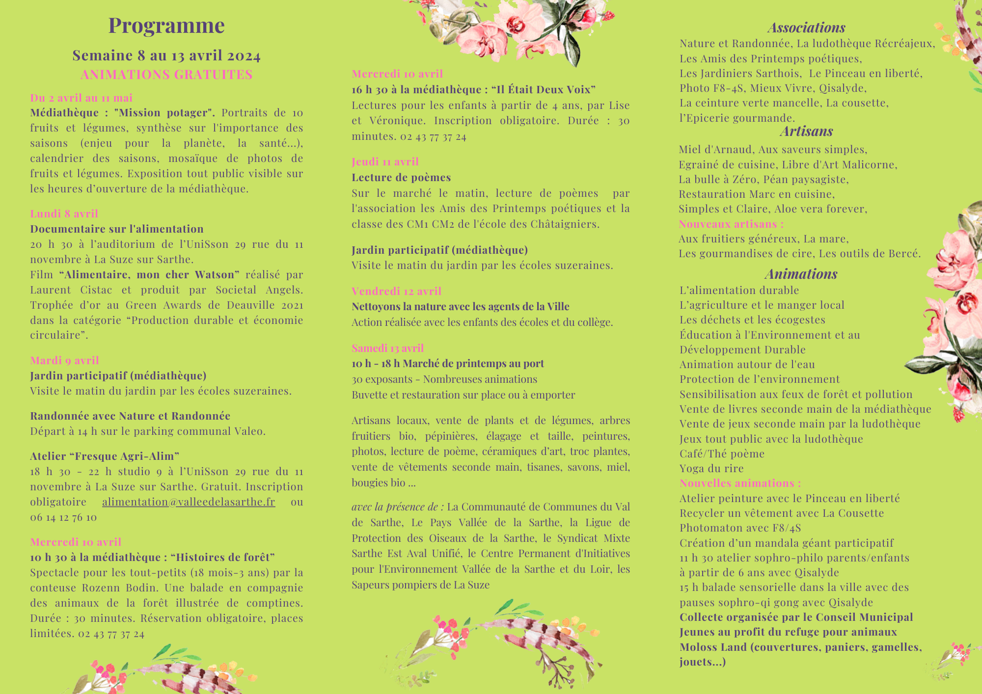 Découvrez le programme : programme La Suze au Naturel 2024