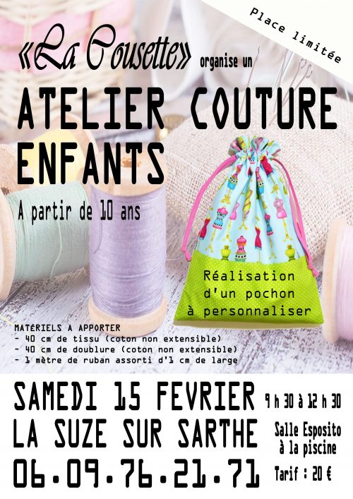 ATELIER COUTURE ENFANTS SAMEDI 15 FEVRIER 2020