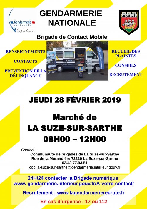 La brigade de contact mobile vous attend sur le marché Jeudi 28 février 2019 de 8h à 12h Partager sur Twitter Partager sur facebook 4887 vues