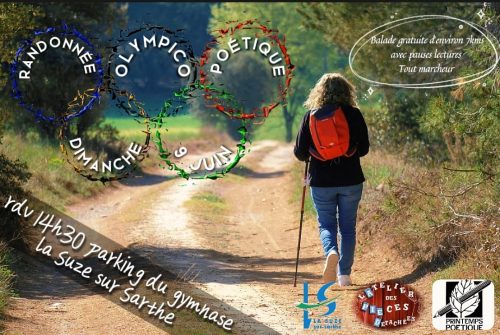 L’association des Amis des Printemps Poétiques, en association avec L’atelier des Pièces Détachées (troupe de théâtre) organise le dimanche 9 juin une randonnée Olympico-poétique autour de la Suze.