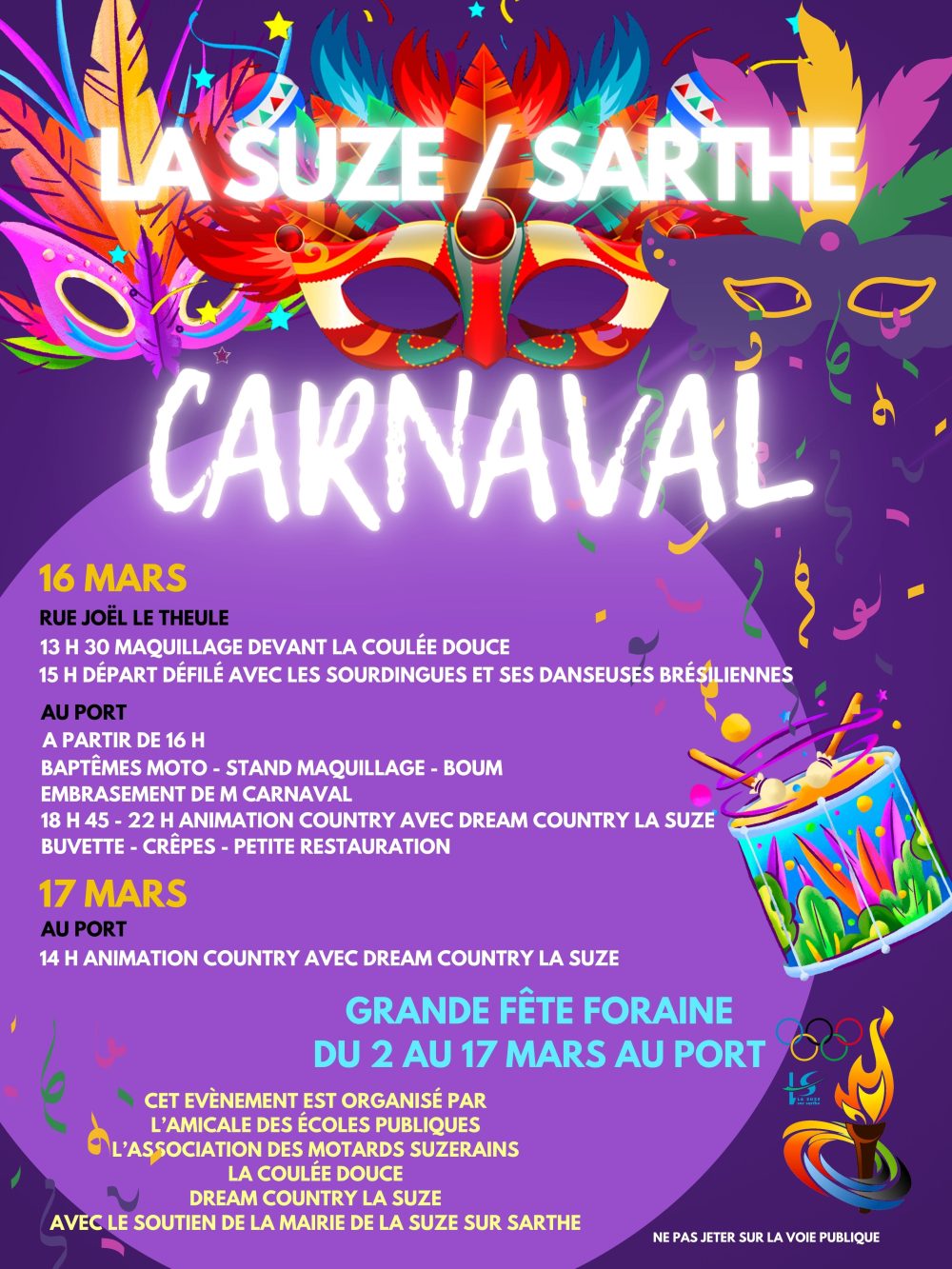 🎭 Carnaval le 16 et 17 mars 2024