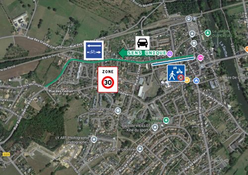 Conformément aux engagements pris en début de mandat, l’équipe municipale de La Suze-sur-Sarthe poursuit la mise en œuvre de son programme en faveur de la mobilité douce et de la sécurité dans le centre-ville. La commission voirie, urbanisme et réseaux a travaillé ces derniers mois à un ensemble d’aménagements destinés à améliorer la circulation des piétons, cyclistes et automobilistes, tout en favorisant une continuité cohérente entre la passerelle, la voie verte et la Vélobuissonnière.