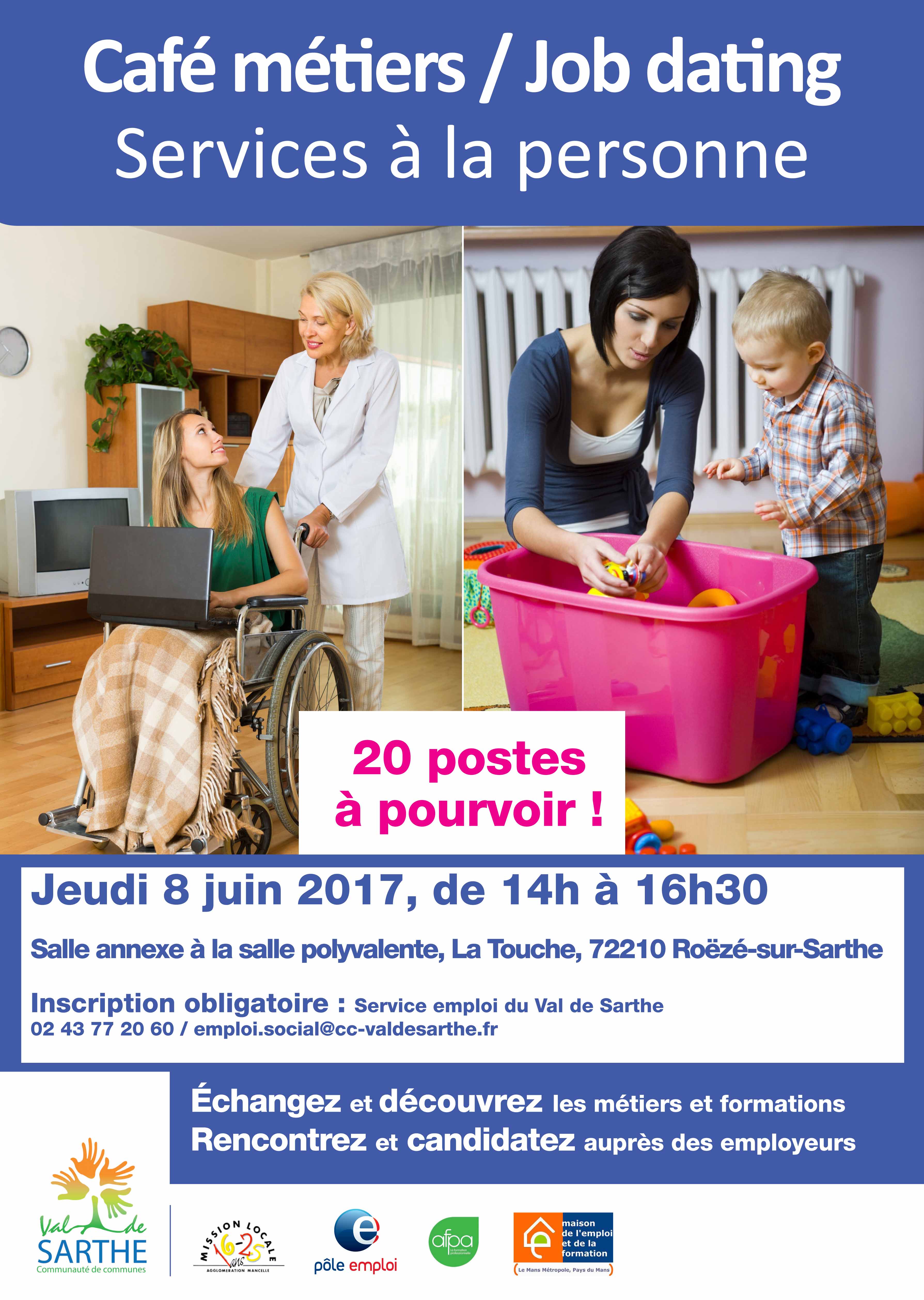 le Jeudi 08 juin prochain, de 14 h 00 à 16 h 30 une rencontre/ job dating autour des métiers de l’aide à la personne.