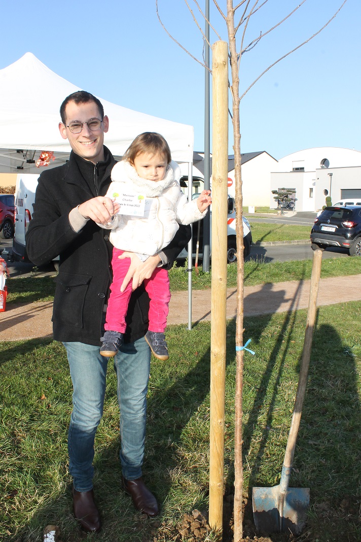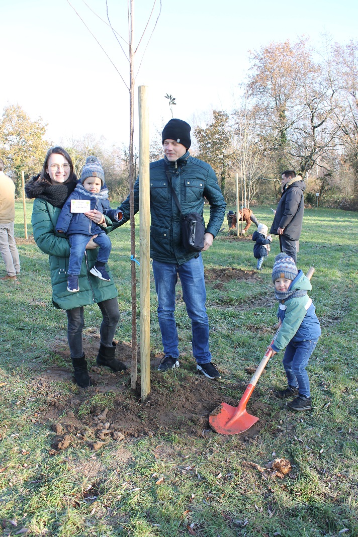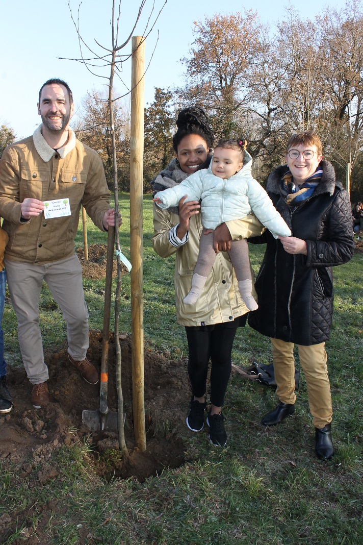 A l’occasion des naissances enregistrées sur les registres d’état civil, la Région des Pays de la Loire, propose de soutenir les communes qui plantent un arbre pour chaque enfant né. La Région participe à hauteur de 15€ par arbre, le reste étant pris en charge par la commune. La Commune de La Suze a la particularité de laisser le choix aux parents de l’essence de l’arbre que leur enfant parraine. Le 2 décembre 2023, 23 arbres ont été plantés par les familles au Parc des Provinces pour les enfants nés en 2022. Le choix du merisier, du charme et du chêne a été fait par rapport à la résistance à la sécheresse et au type de sol. Un petit gouter (avec des brioches réalisées par la cuisine centrale) a permis aux parents de se rencontrer autour d’un café ou d’un chocolat chaud. Chacun a apprécié ce moment convivial, symbolique et écologique.