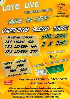 VENDREDI 4 FEVRIER : LOTO A LA MAISON AU PROFIT DE L’ECOLE DU SACRE COEUR