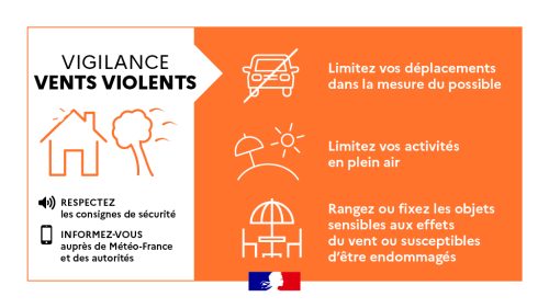 - Déplacements : Limitez vos déplacements et réduisez votre vitesse sur la route. Soyez vigilants face aux obstacles (branches, débris) pouvant joncher la chaussée.